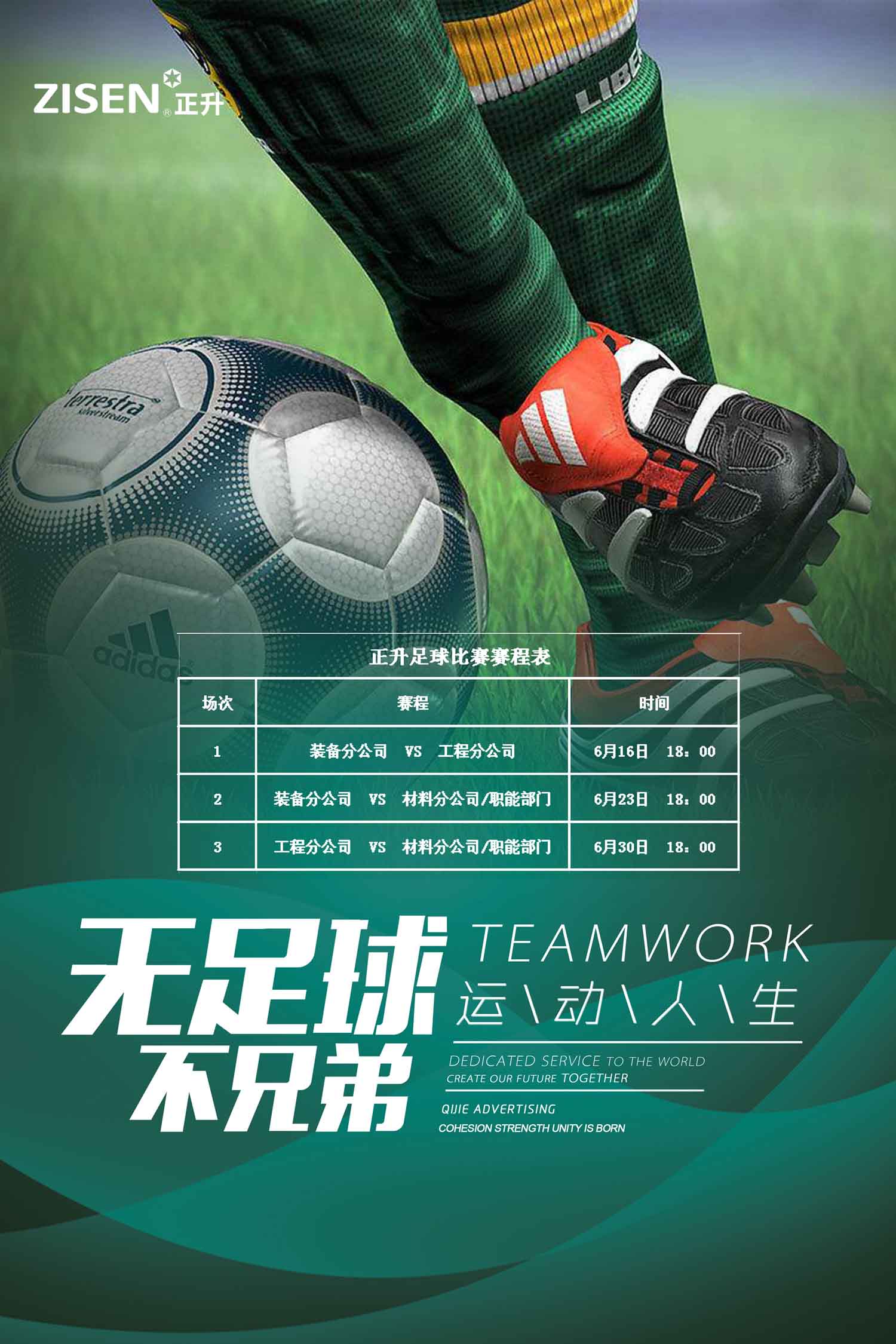 綠茵點(diǎn)亮夢(mèng)想、激情舞動(dòng)青春。整場(chǎng)球賽分成上半場(chǎng)、下半場(chǎng)兩個(gè)回合來(lái)進(jìn)行,參賽精英由公司各部門人員提名參加,分別由裝備分公司、工程分公司、材料分公司及職能部門三支球隊(duì)構(gòu)成,大家以“無(wú)足球,不兄弟”的參賽口號(hào),來(lái)享受這次活動(dòng)。